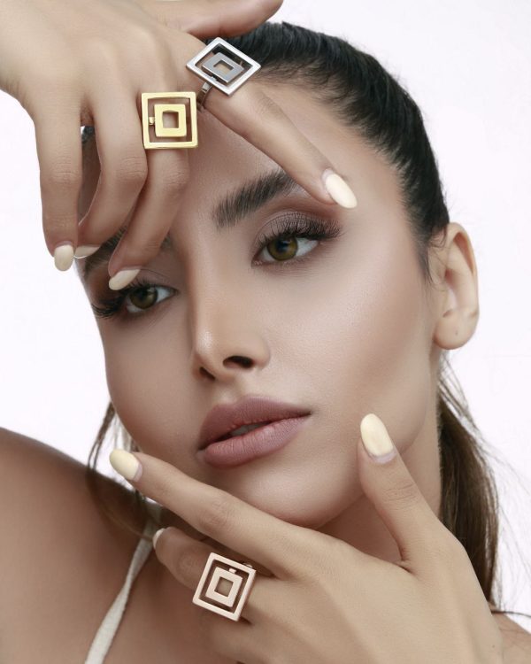 خانه انگشتر انگشتر استیل مربع در سه رنگ