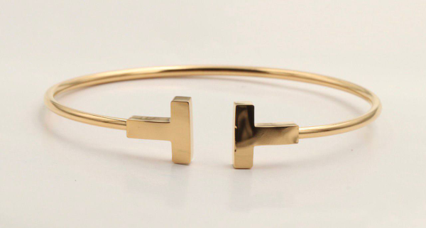 دستبند طرح طلا پهن سبک کارتیر طلایی