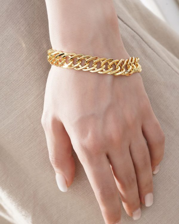 دستبند طرح طلا پهن سبک کارتیر طلایی