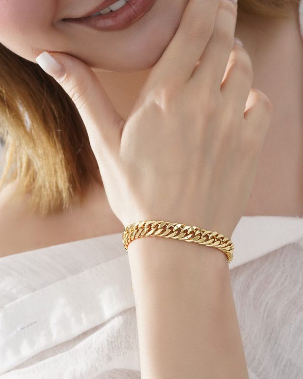 دستبند طرح طلا پهن سبک کارتیر طلایی