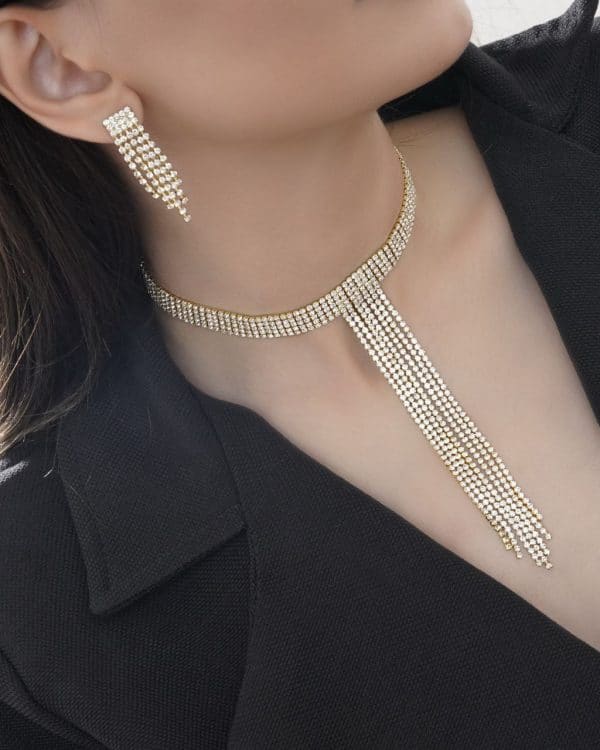 نیم ست پر نگین جواهراتی مدل3 در دو رنگ