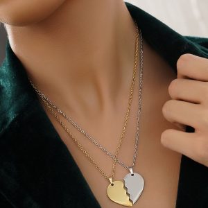 گردنبند دو لاین استیل با اویز قلب چشم نظر طلایی
