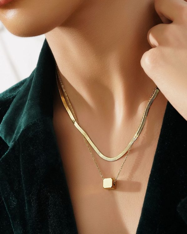 خانه گردنبند گردنبند استیل زنانه گردنبند دو لاین مکعبی طلایی
