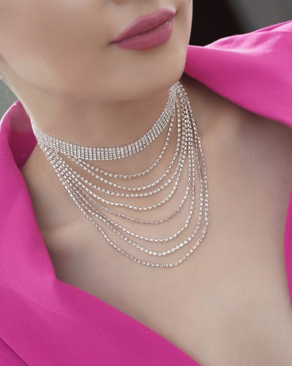 خانه گردنبند گردنبند چوکر پرنگین نقره ای